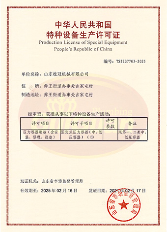 山東桂冠機(jī)械有限公司成立于2008年,注冊(cè)資金1600萬元,現(xiàn)有員工200多人,中高級(jí)技術(shù)管理人員45人,占地面積27000多平方米,生產(chǎn)車間面積12000多平方米。公司具備壓力容器產(chǎn)品的設(shè)計(jì)、制造(證書編號(hào)為:TS2237703-2025)、壓力管道安裝(證書編號(hào)為TS3837607-2025)全套壓力容器資質(zhì);通過國(guó)家ISO9001質(zhì)量管理體系認(rèn)證、美國(guó)ASME認(rèn)證、歐盟CE認(rèn)證;擁有建筑安裝機(jī)電工程專業(yè)承包叁級(jí)資質(zhì)、建筑工程施工總承包叁級(jí)資質(zhì)及對(duì)外貿(mào)易經(jīng)營(yíng)出口權(quán)…